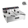 The UEF-08L2 is a countertop electric fryer featuring 2 wells and 2 stainless steel baskets. Constructed with stainless steel, it comes with an adjustable thermostat for precision control. Each well has a oil capacity of 10 liters (total of 2x10 liters), and the unit operates at 2x1.6KW power. Stainless steel covers are included for each well.
